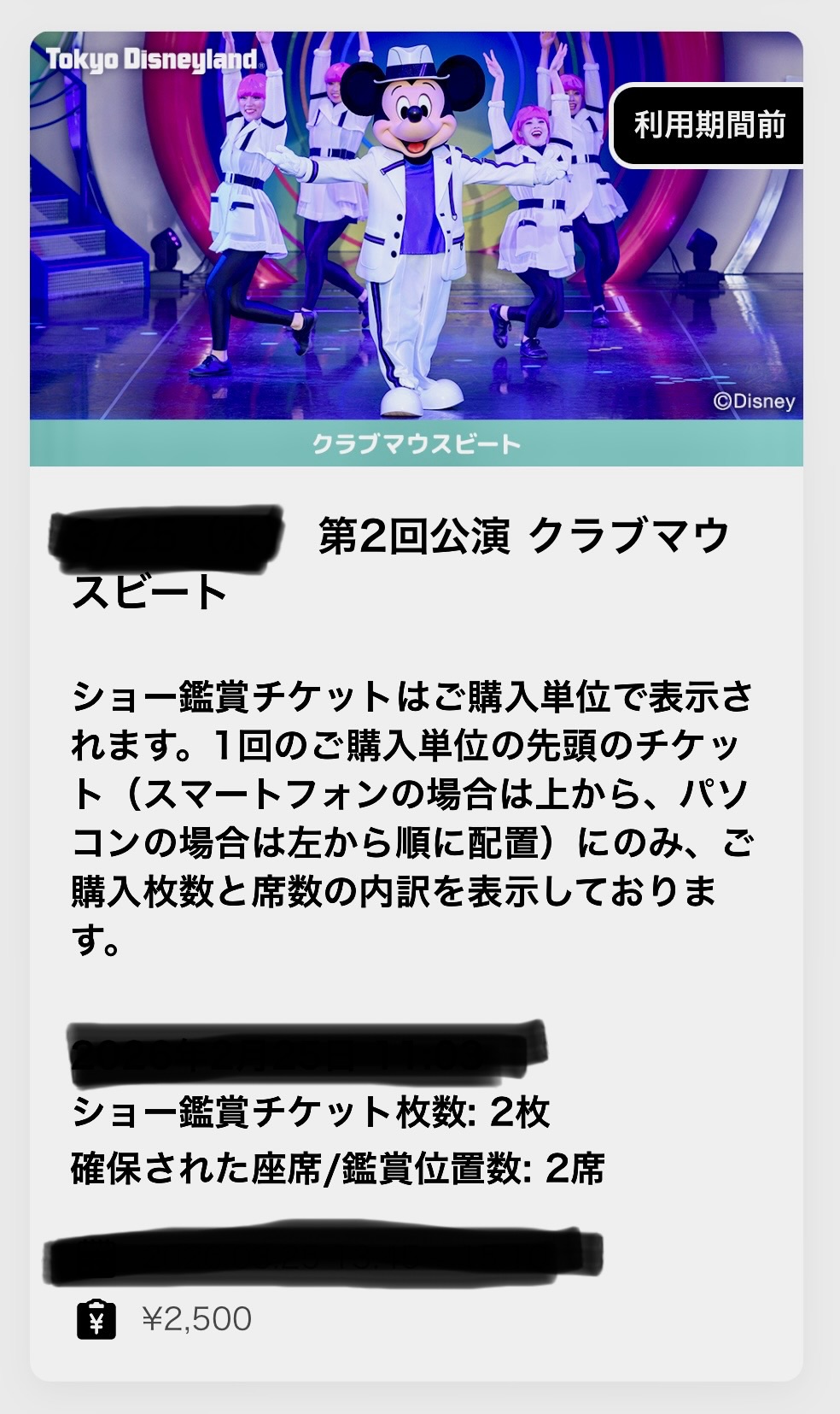 今年の3月31日終了予定のディズニーランドで観れるショーのチケットが取れました!